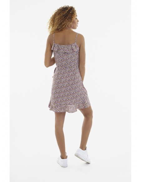 Vestido cruzado smock con tirantes y volantes.